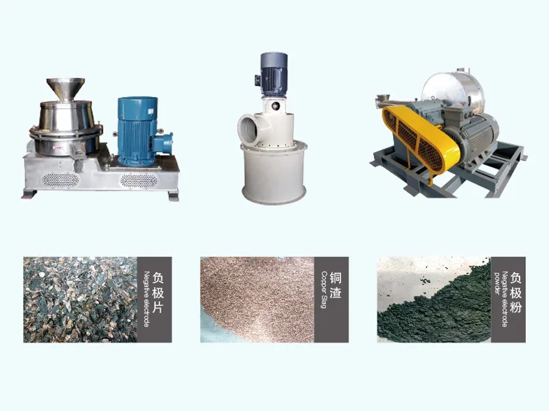 - 该设备主要用于锂离子电池生产厂家及固废回收企业,对报废正负极片中的铜泊与碳粉进行分离处理,以便循环利用之目的。
